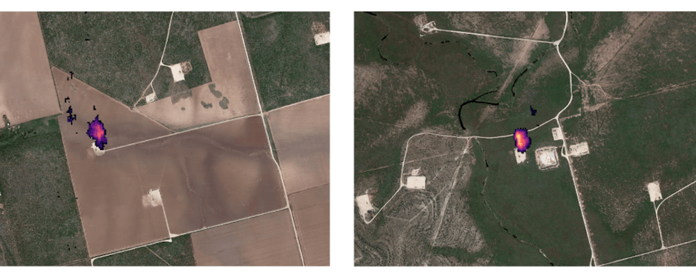 Figure 3. Detections from OSK’s Ghost 2 Sensor indicating possible leaks on well pads.