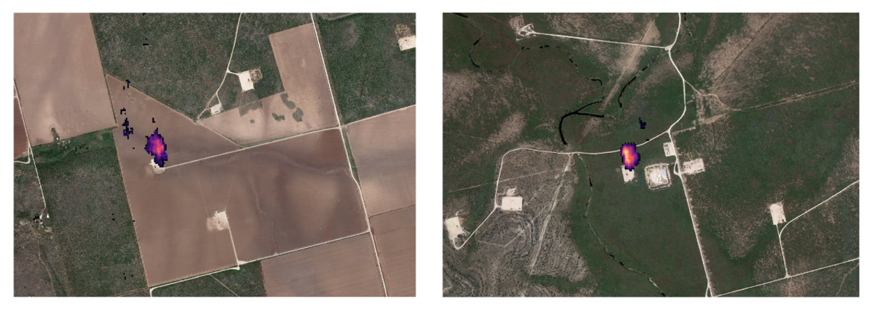 Figure 3. Detections from OSK’s Ghost 2 Sensor indicating possible leaks on well pads.